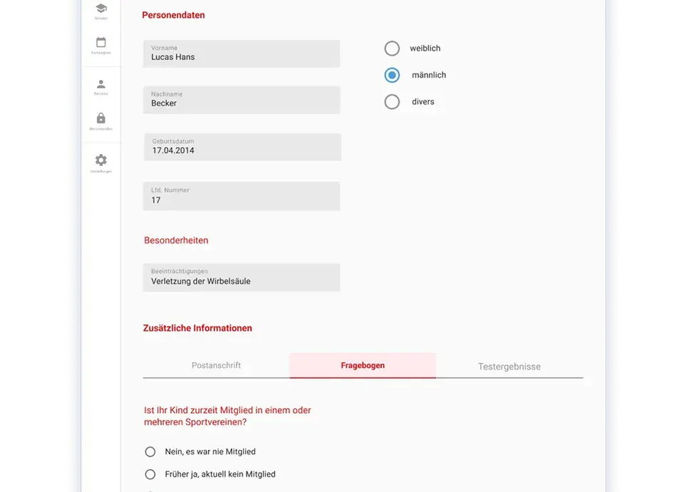 Liegt am Tag der sportmotorischen Tests trotz aller Bemühungen keine Einverständniserklärung vor, haben die Tester:innen die Möglichkeit, alle erforderlichen Angaben direkt bei den Schüler:innen zu hinterlegen.