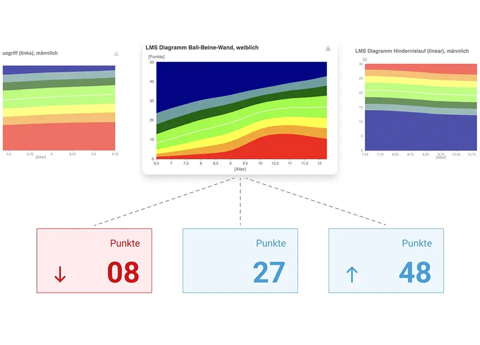 Mit der intuitiven Web-App lassen sich sportmotorische Tests ganz einfach durchführen und protokollieren. Die Ergebnisse werden automatisch im Sportportal gespeichert und können dort übersichtlich ausgewertet werden.